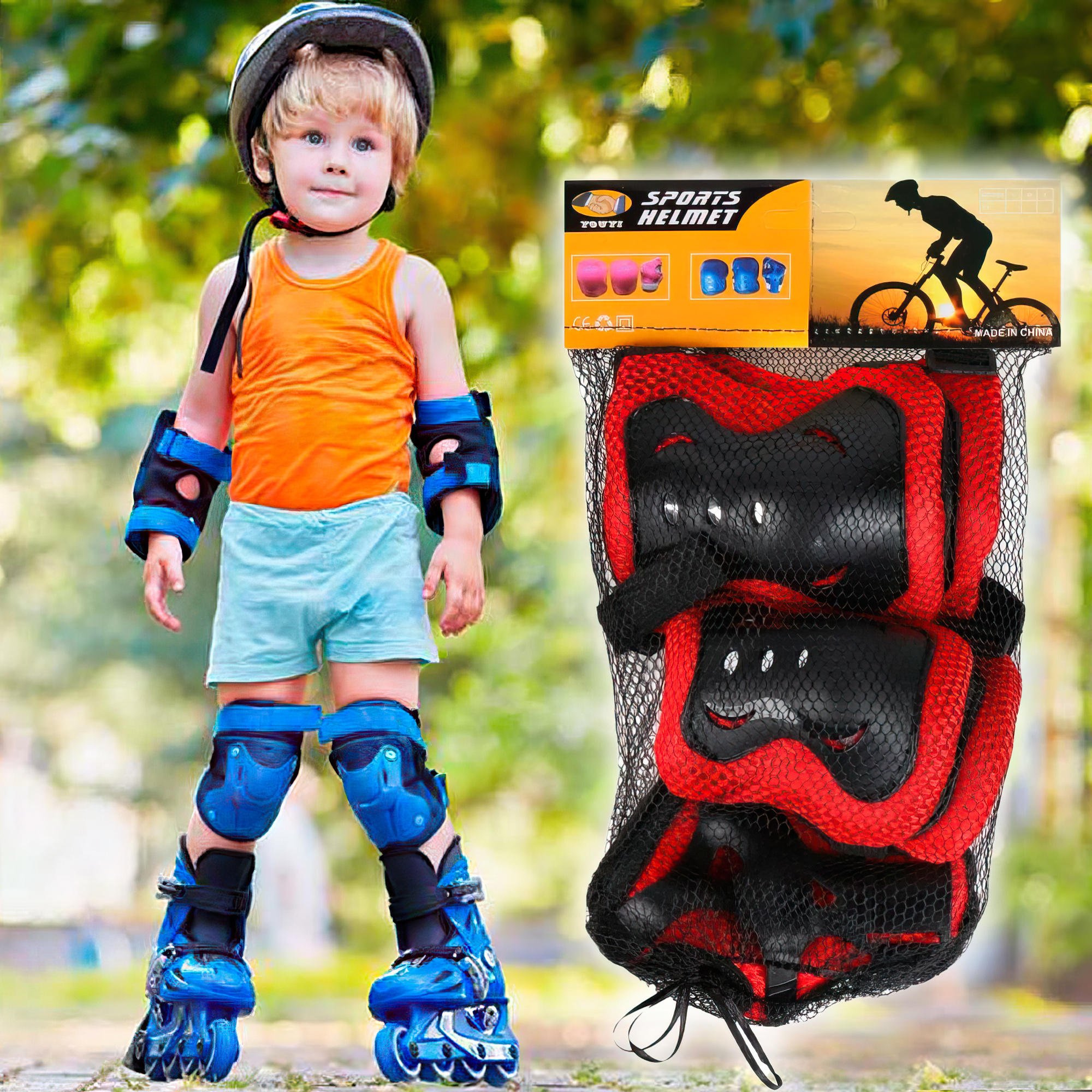 Ніякі наколінники не замінять інші елементи екіпірування під час катання на роликах або велосипеді. Для максимального захисту ваша дитина має одягати також дитячий велосипедний шолом. Надійно зафіксований захист значно зменшить ризик травм голови. Він захищатиме скроні, потилицю, чоло від прямих і бічних ударів під час падіння. Дитячий шолом для роликів дасть змогу хлопчику чи дівчинці почуватися вільно, не боятися кататись. Купуючи дитячу шапку-шолом, ви також отримуєте стильний аксесуар для малечі, який додає яскравості та ще більше позитивних емоцій від активного відпочинку.