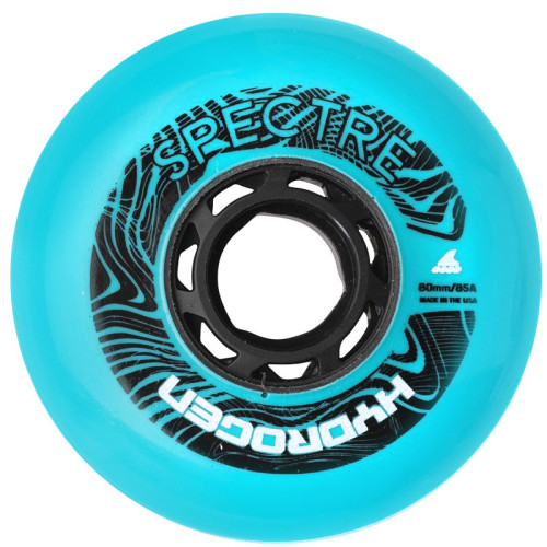 Колеса Hydrogen Spectre 80/85A Aqua це нова модель коліс 2023 року що встановлюється на ролики преміум сегменту. Rollerblade Hydrogen це колеса що виробляються у США або з матеріалів з США. Тобто головна фішка це саме найякісніша сировина. Поліуретан тут такий самий як у топових моделях для спидскейтингу, але це колесо розроблено для фрискейту. Має середню жорсткість. Дуже маленька ступиця. Багато поліуретану. Дуже комфортні на будь-якому покритті. Чудово працюють на стрибках, та завдяки гострому профілю мають чудовий накат. Цю модель можна віднести до найкращих коліс що взагалі існують. Колір aqua чудово можна комбінувати з чорним або новим кольором salmon.