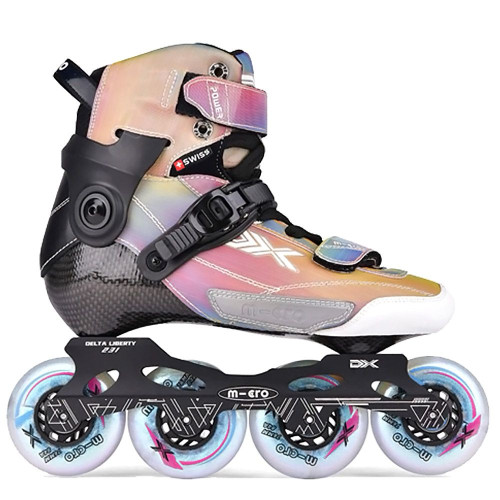 Ролики MICRO Delta Liberty Iridescent - професійні карбонові ролики для слалому та міського катання з системою знімних устілок, що дозволяє регулювати розмір. Модель рекомендована для дітей від 8 років, витримує навантаження на стрибках та трюках.